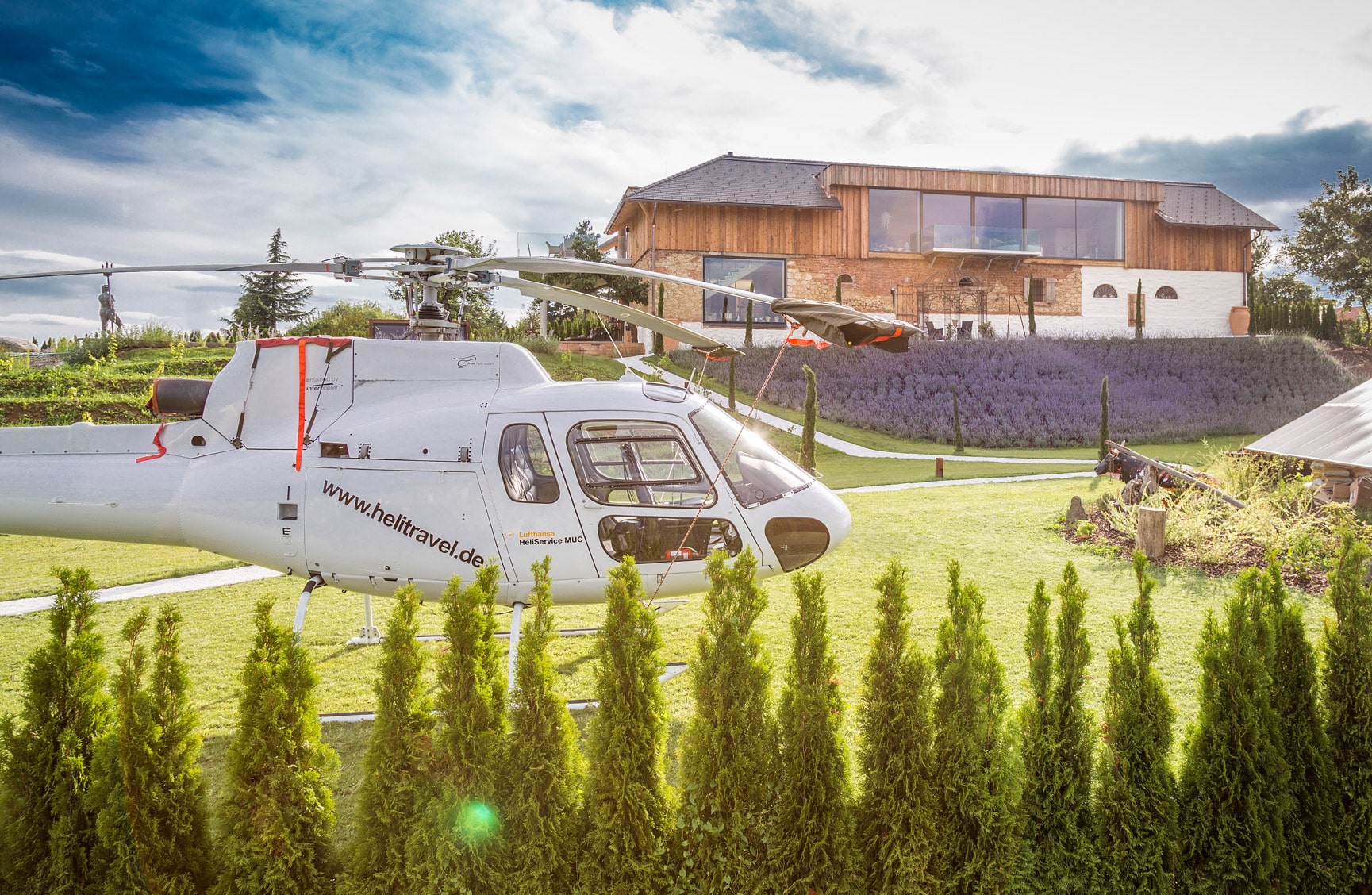 Sie starten Ihren exklusiven Flug mit einem Helikopter unseres Kooperationspartners „Heli Line“ und entdecken die malerische Landschaft der Südsteiermark. „Frei wie ein Vogel“ bestaunen Sie aus faszinierender Perspektive die steirischen Weinberge und landen dann sicher am Areal von Golden Hill. Sie können Ihren VIP-Flug natürlich auch direkt von Golden Hill aus starten.