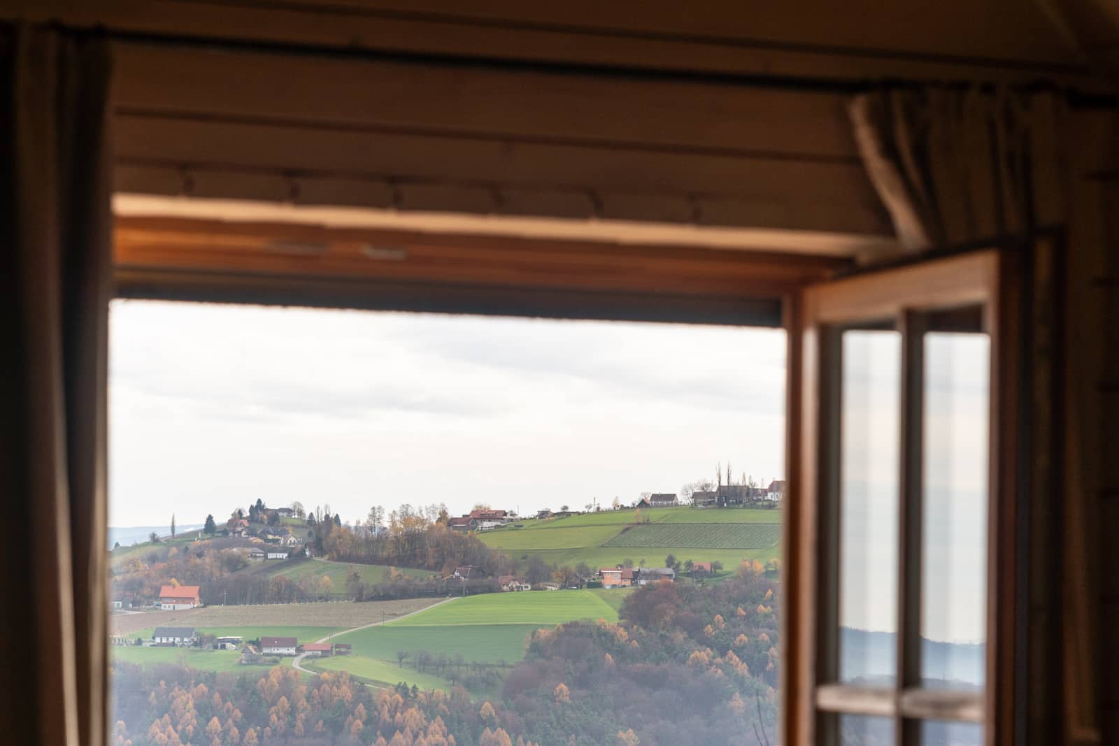 - Große Steinterrasse mit Blick auf Graz und die steirische Berg- und Hügellandschaft