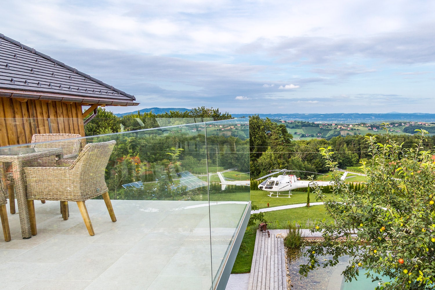 - 21 Meter breite Panoramafenster mit Balkon und Terrassen
