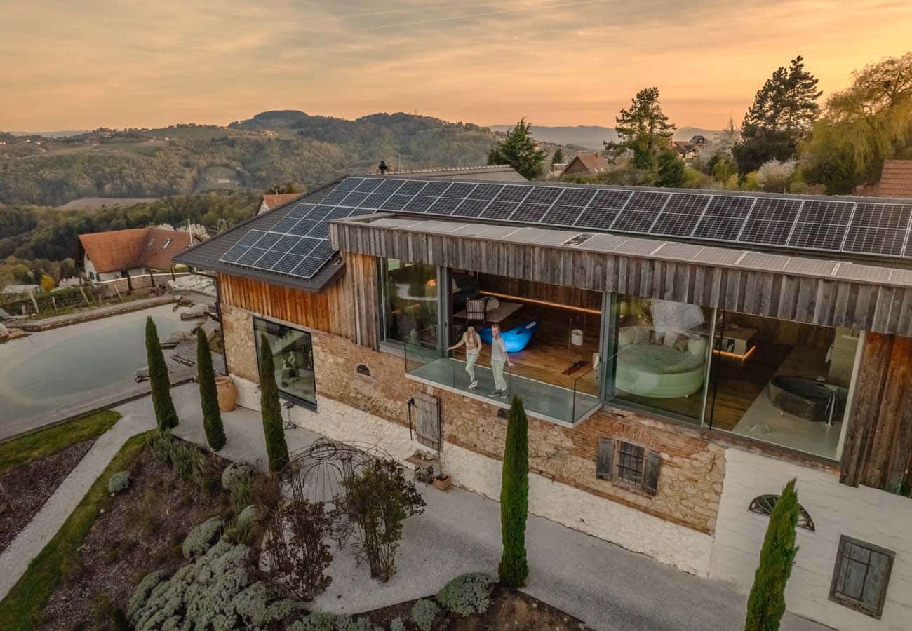 Mit architektonischer Raffinesse wurde das ehemalige Stallgebäude in St. Nikolai in der Steiermark zum 300 m² großen, modernen Panorama-Loft umgebaut. Luxuriös und in perfekter Harmonie mit Eleganz und Natürlichkeit. Ein Glaskubus – 12,5 m Richtung Osten, 5 m Richtung Süden und 4 m Richtung Westen – sorgt für ein angenehmes Lichtspiel und spektakuläre Aussichten. Genießen Sie dieses Luxus-Refugium mitten im unverwechselbaren Ambiente des Golden Hill.