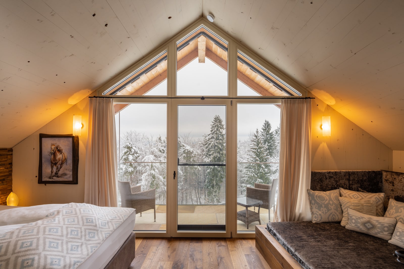 Pure privacy for two awaits you in our gallery house, which welcomes you with “polar” extravagance all in white. The private spa includes a bathtub in front of the fireplace, an extra-large sauna cube and a private spa garden where you can really relax under the old apple tree.