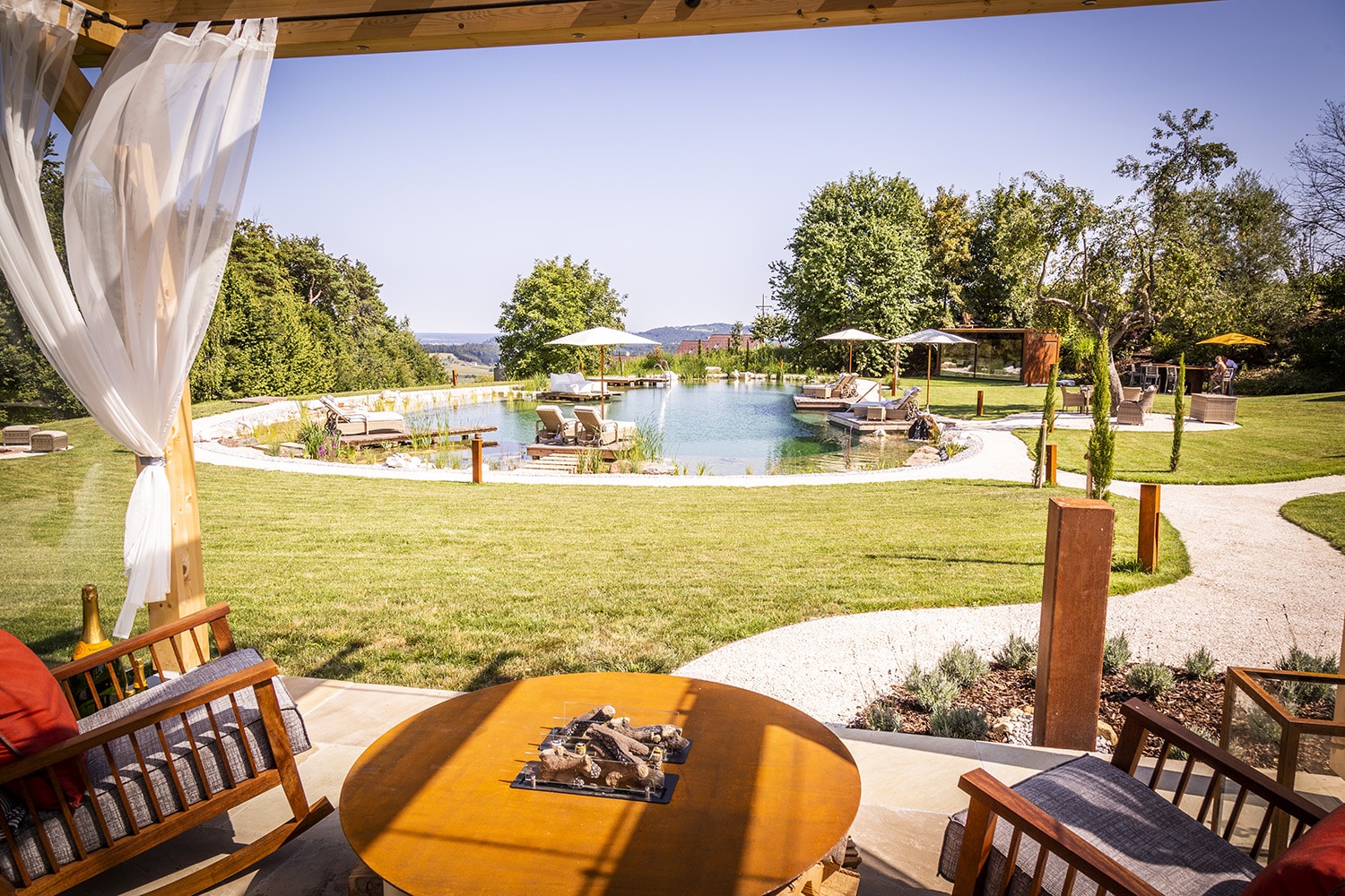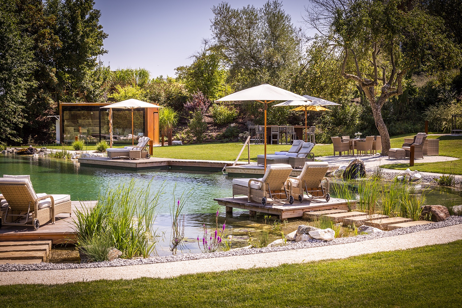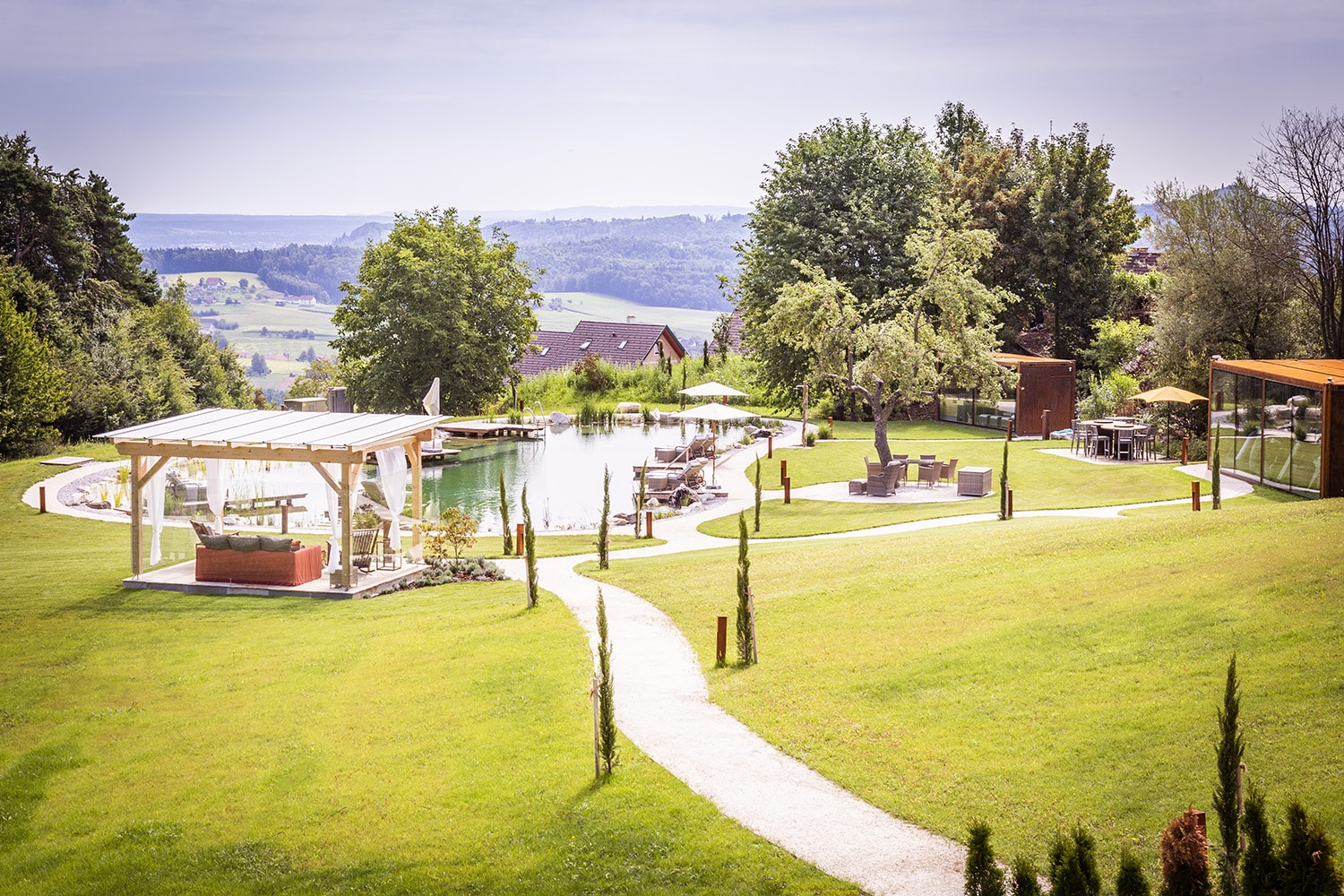 Unser 600 m² großer, preisgekrönter Naturschwimmteich mit idyllischen Wohlfühloasen ist das Herzstück von Golden Hill. Schwimmen Sie sich frei und genießen Sie absolute Privatsphäre mit völliger Berührungsfreiheit. Ihr Logenplatz am Wasser ist für Sie reserviert! So geht Sommerurlaub in der Südsteiermark!