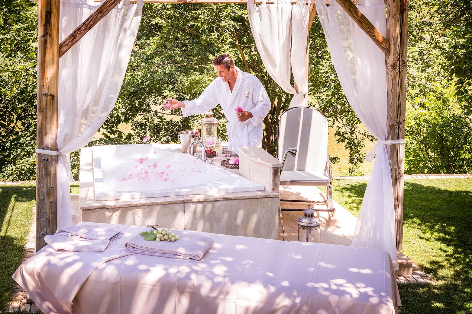 Jedes unserer fünf Luxus Country Chalets ist eine Wellness-Oase für sich, wo Sie exklusiv entspannen: Dazu zählt jeweils eine Sauna und eine frei stehende Badewanne im Chalet oder sogar unter freiem Himmel. Massagen und Beauty-Treatments genießen Sie ebenso in ganz privatem Rahmen im eigenen Chalet oder im Freien.