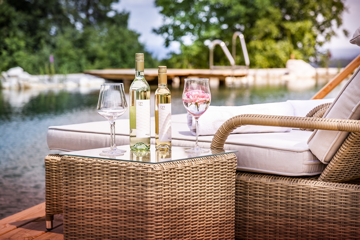 Spüren Sie „überschäumende Lebensfreude“ im wahrsten Sinne des Wortes. Wenn der Urlaubstag gebührend ausklingen soll oder wenn es was zu feiern gibt – Geburtstag, Verlobung, Heiratsantrag … oder einfach nur das Leben! Wir haben eine feine Auswahl für Ihren prickelnden Genuss. Unser „Outdoor-Wohnzimmer der besonderen Art“ mit herrlichem Blick auf den Naturschwimmteich eignet sich auch bestens für eine entspannte Zigarre. Gastgeber Andreas hat ein schönes Sortiment in seinem Humidor. Die Lounge steht unseren Gästen immer zur Verfügung, kann aber auch exklusiv für genussvolle Urlaubsmomente gebucht werden.